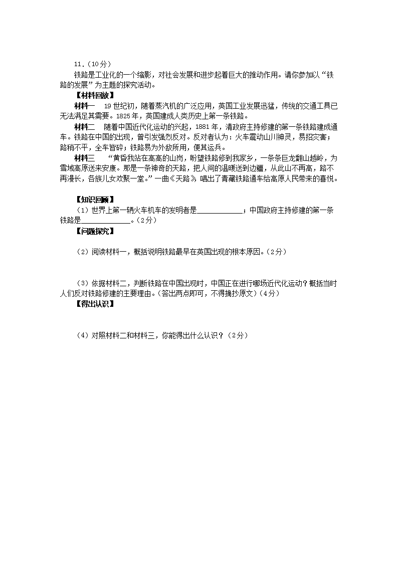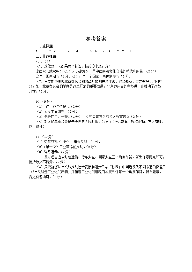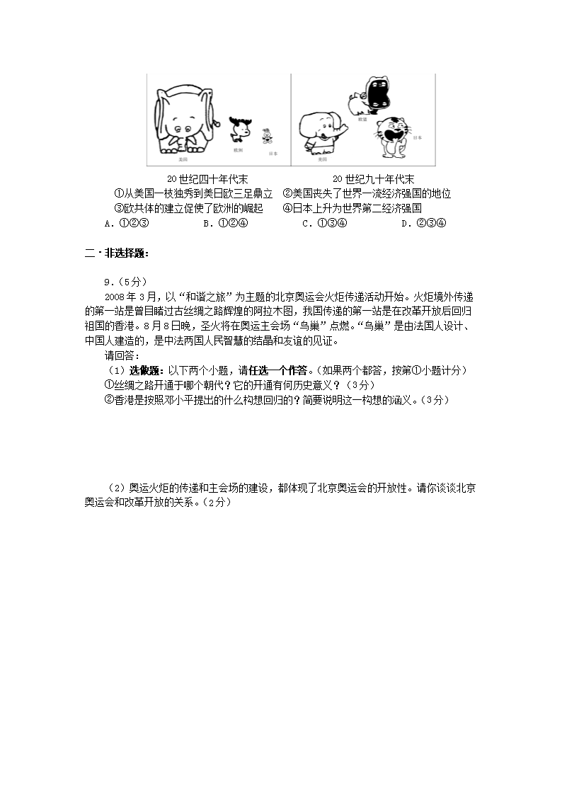 【文档名称】 2008年陕西省中考历史真题及答案(Word版).doc