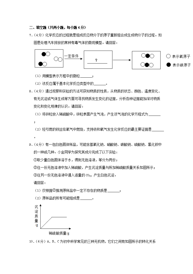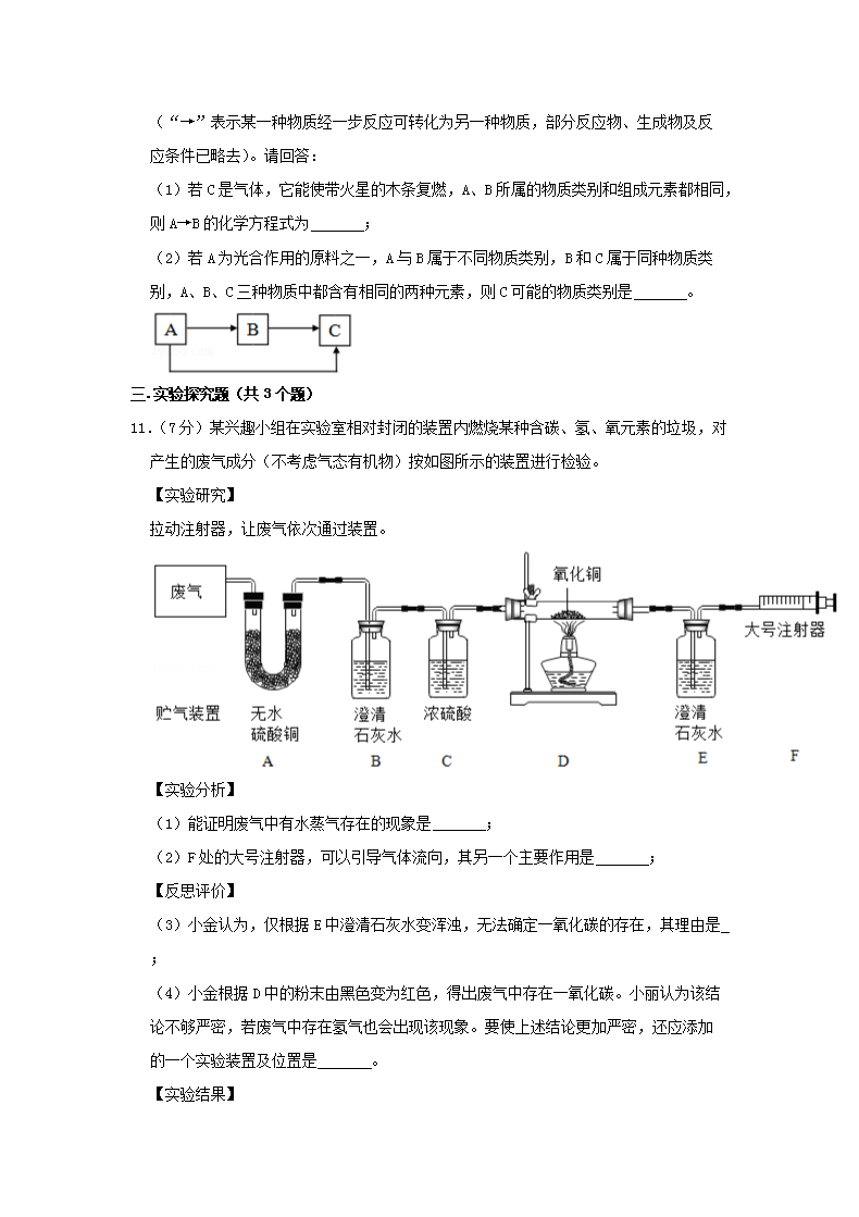 【文档名称】 2019浙江省丽水市中考化学真题及答案(Word版).doc