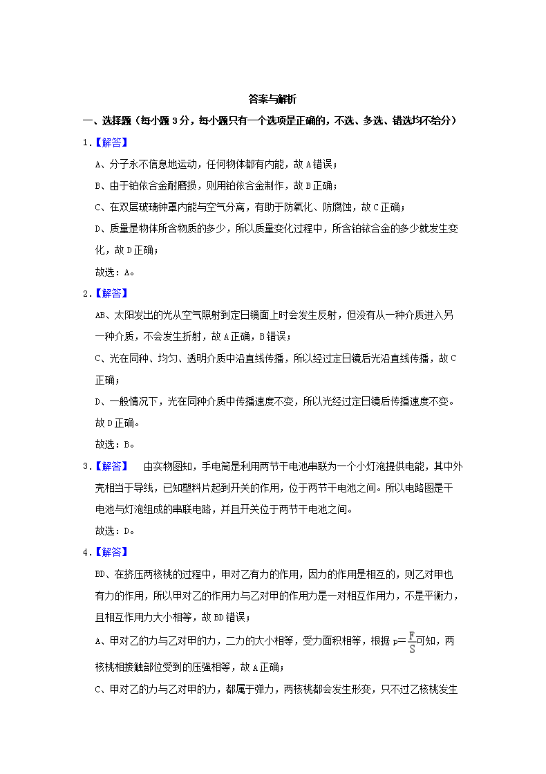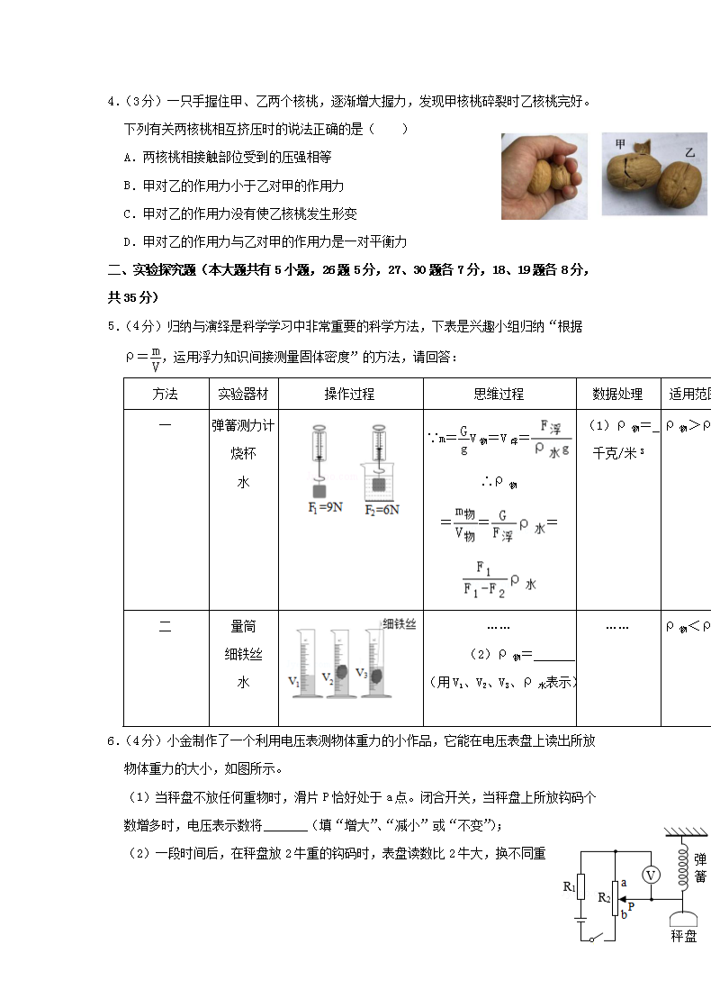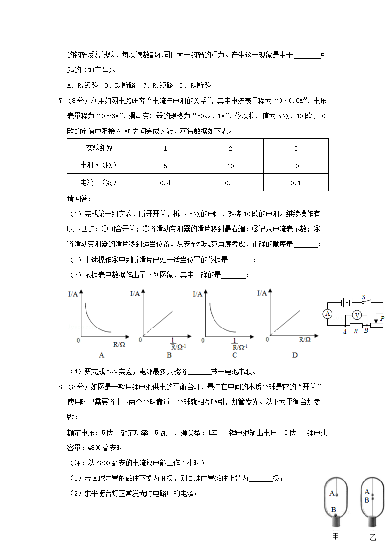 【文档名称】 2019浙江省丽水市中考物理真题及答案(Word版).doc