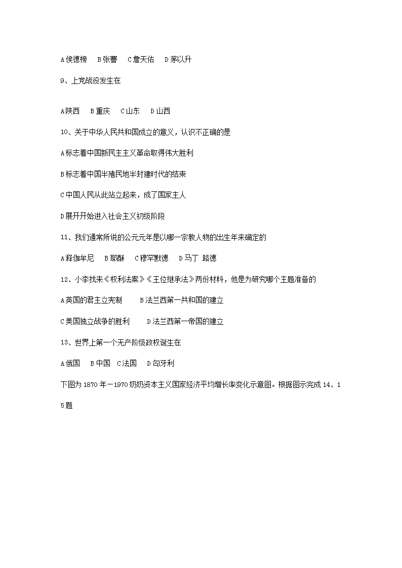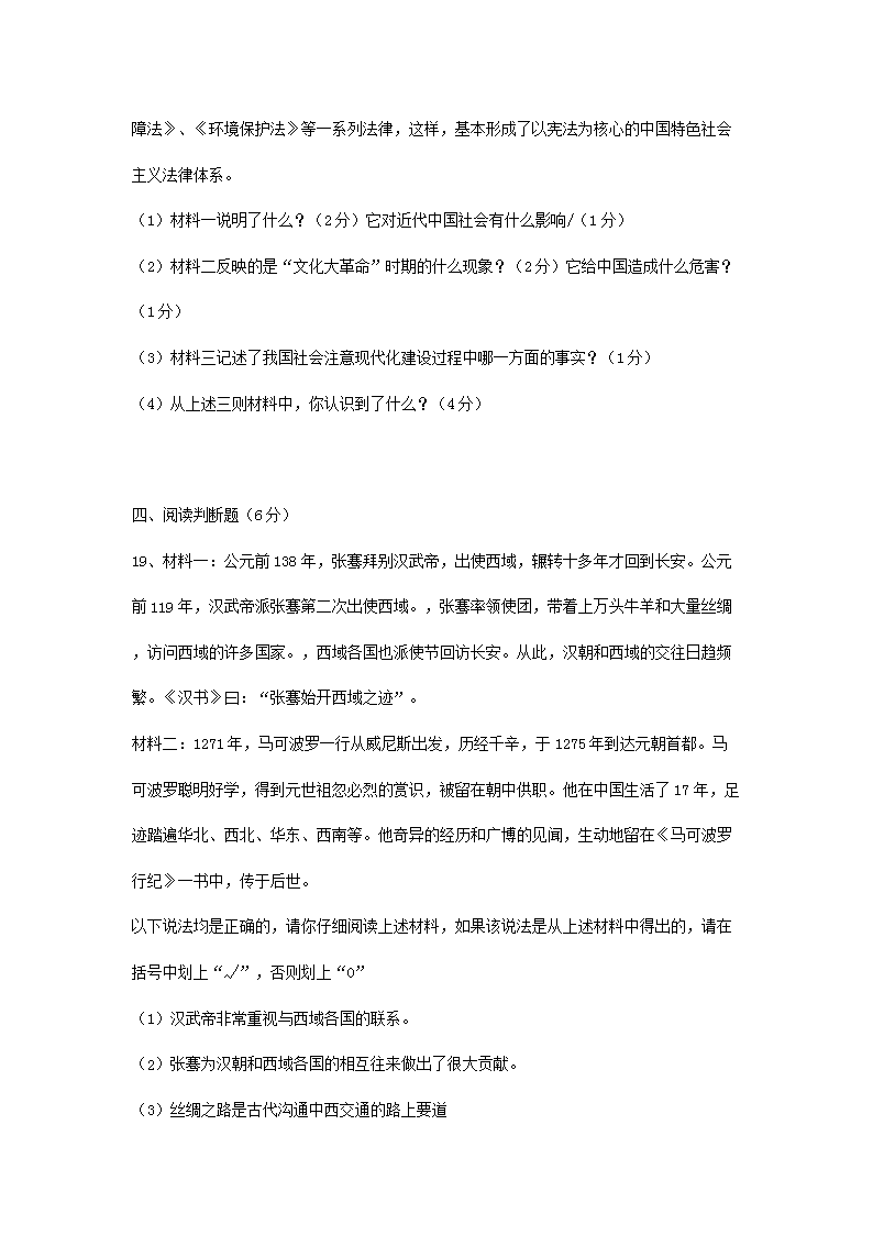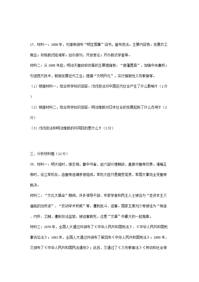【文档名称】 2008年山西省中考历史真题及答案(Word版).doc
