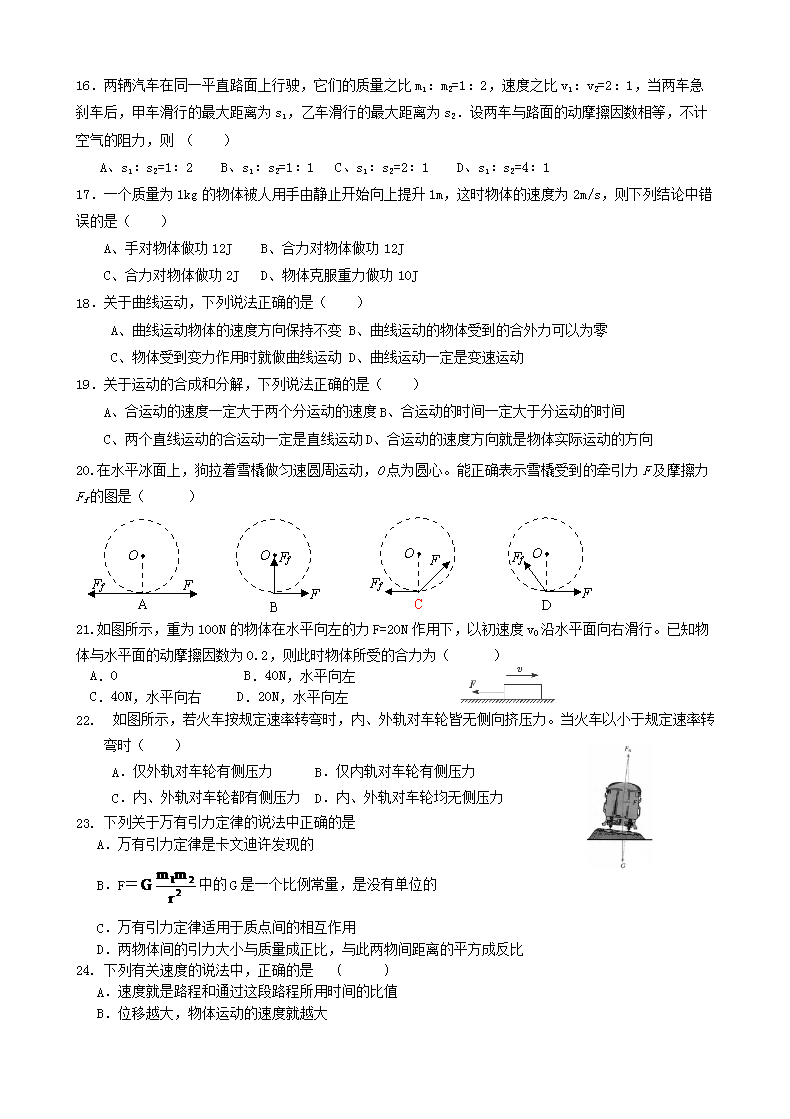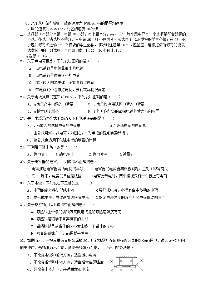 【文档名称】 2012年浙江普通高中会考物理真题及答案(Word版).doc