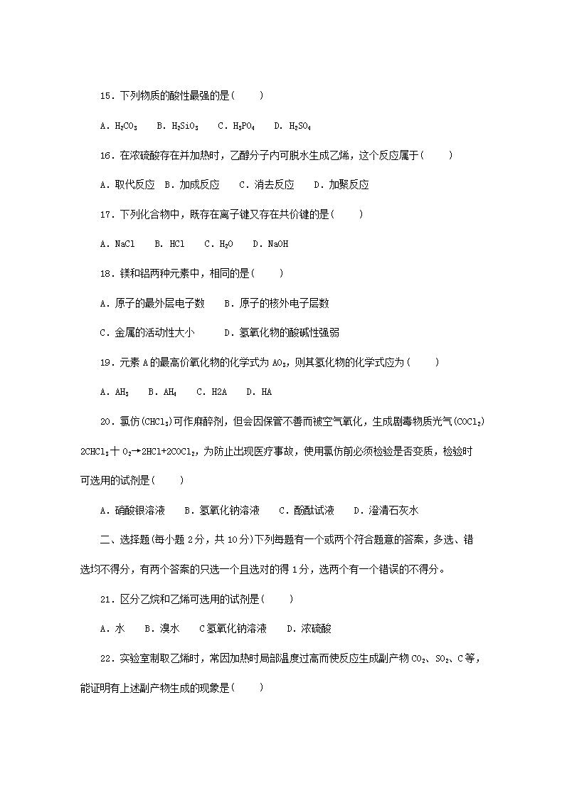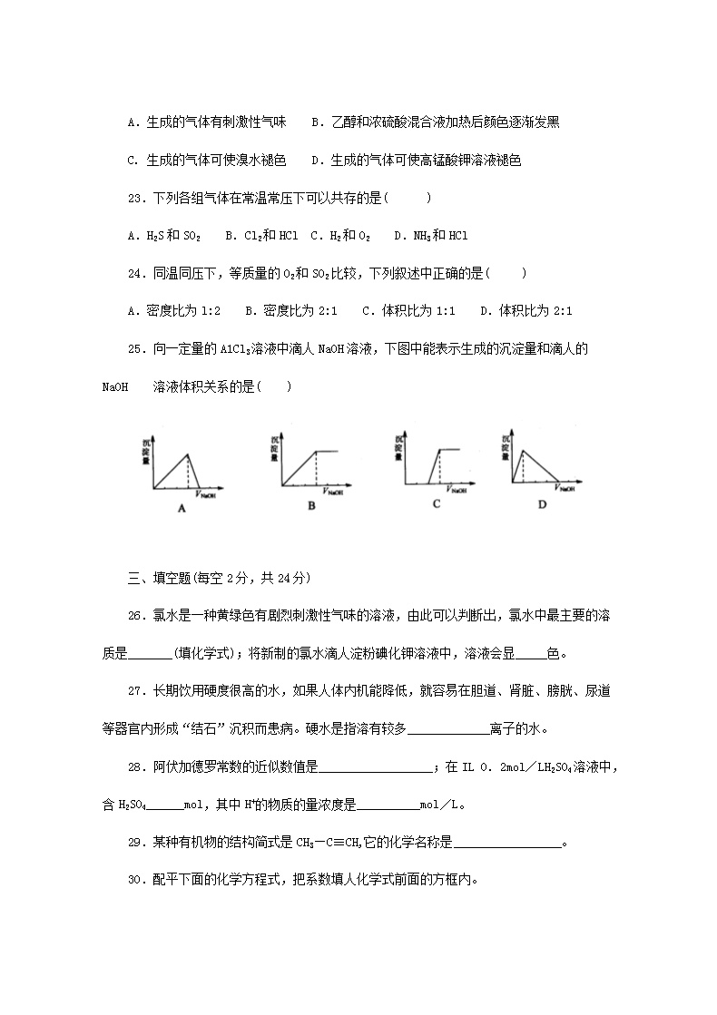 【文档名称】 2001年广西普通高中会考化学考试真题(Word版).doc