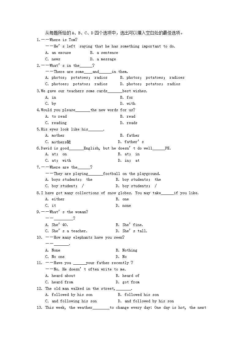 【文档名称】 2009年山东省教师招聘考试小学英语真题及答案(Word版).doc