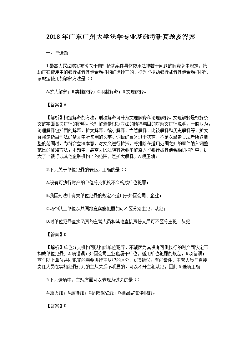 【文档名称】 2018年广东广州大学法学专业基础考研真题及答案(Word版).doc