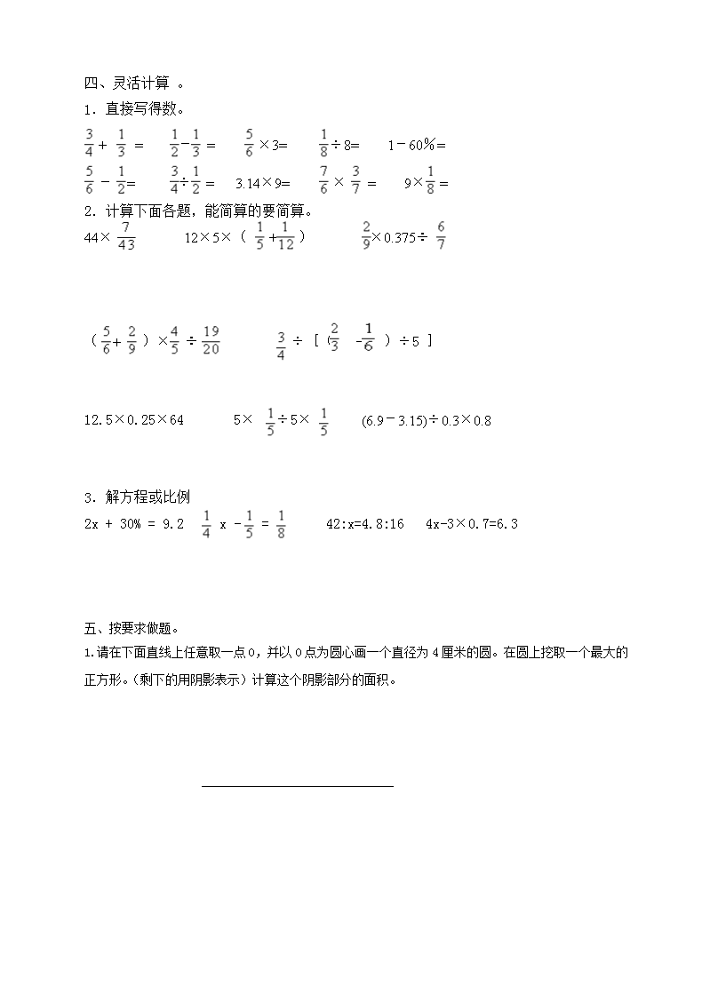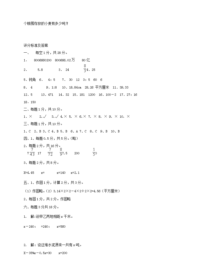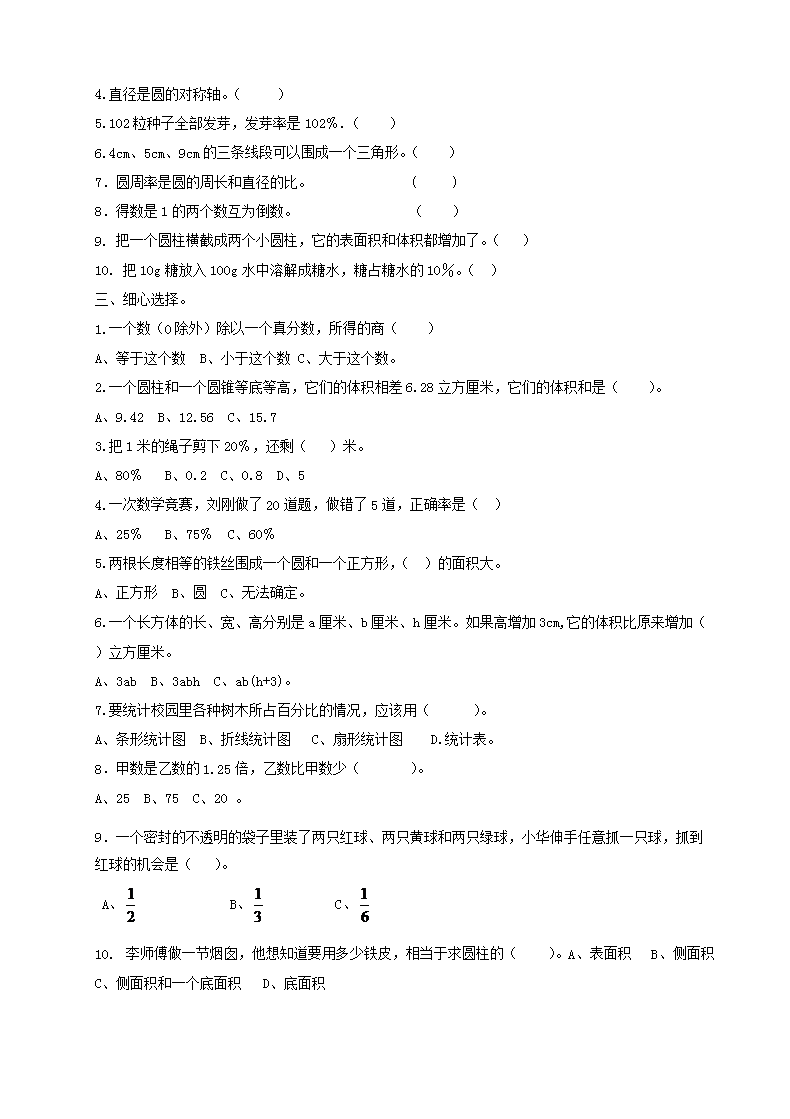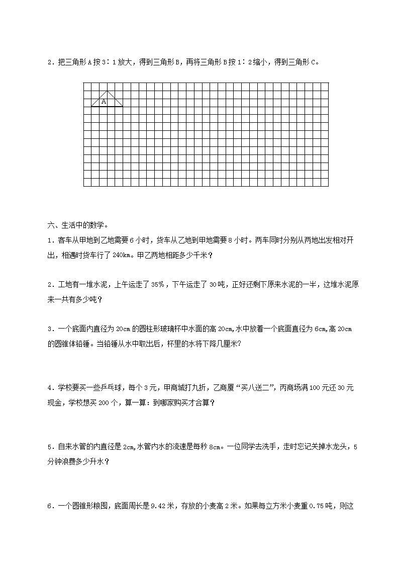 【文档名称】 2012年山西小升初数学真题及答案(Word版).doc