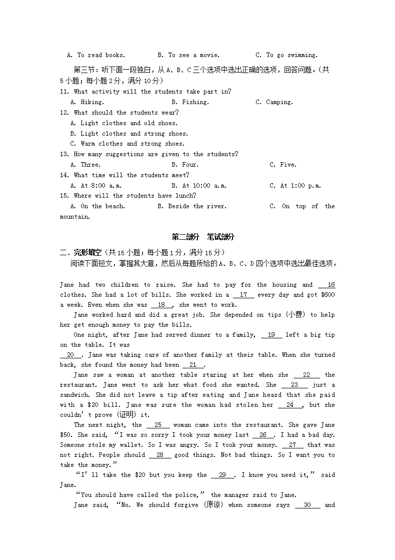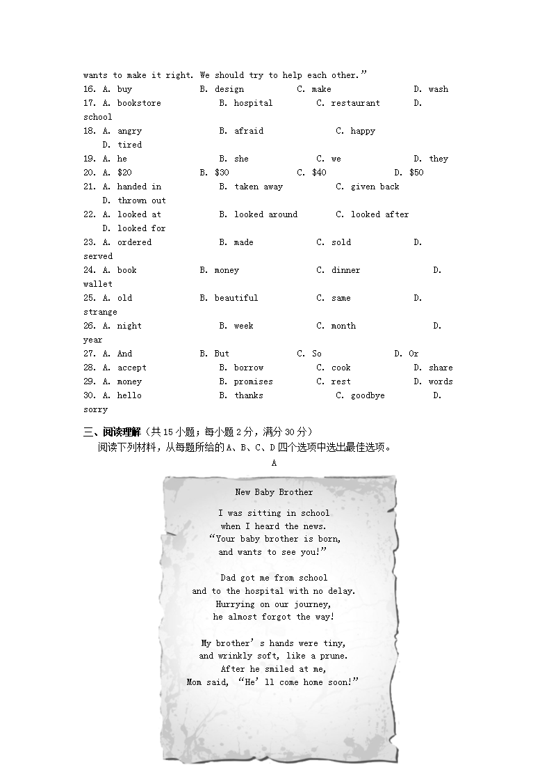 【文档名称】 2016浙江省丽水市中考英语真题及答案(Word版).doc