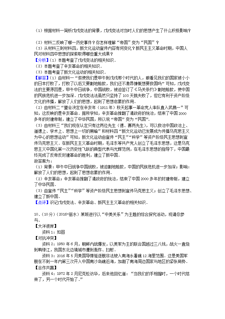 【文档预览】 无忧考网整理发布2016浙江省丽水市中考历史真题及答案(Word版),前五页预览如下: