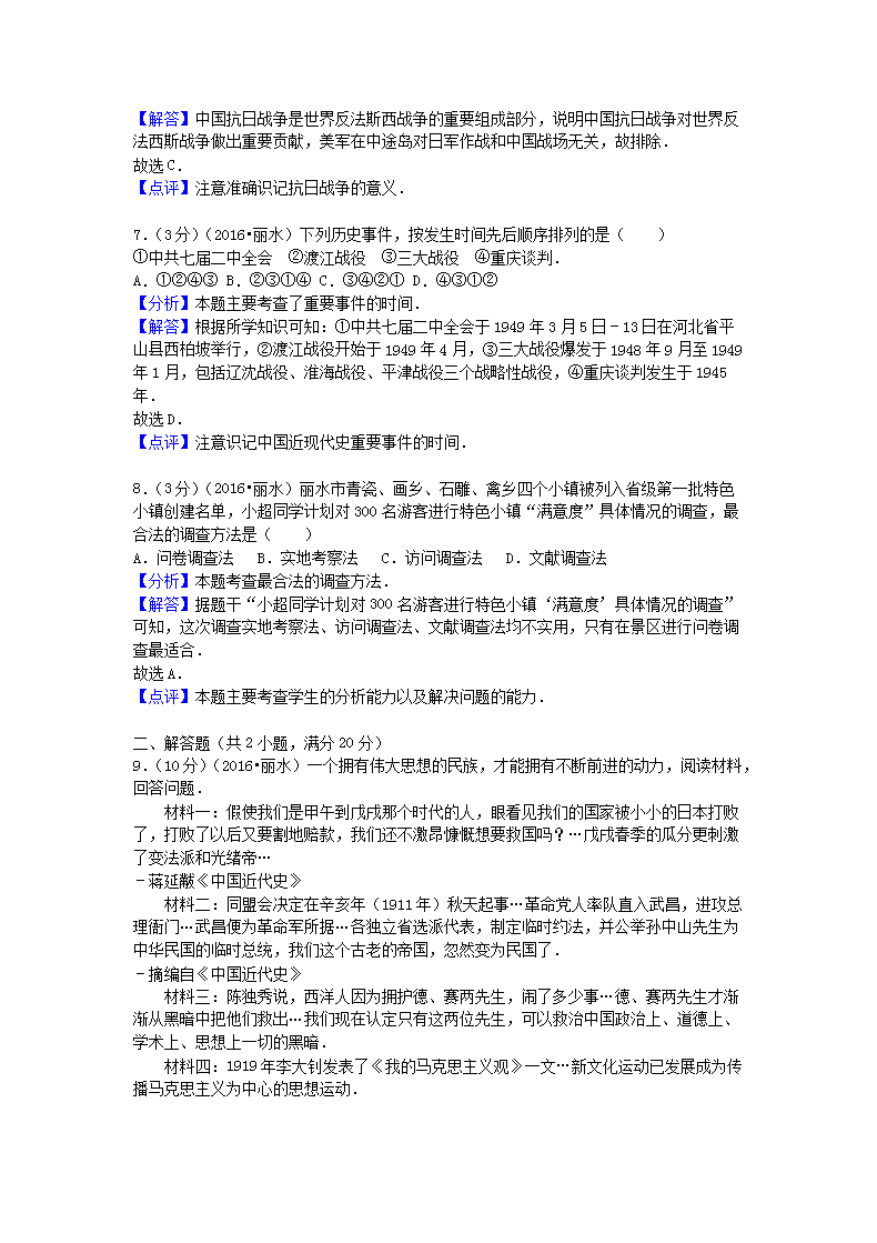 【文档名称】 2016浙江省丽水市中考历史真题及答案(Word版).doc