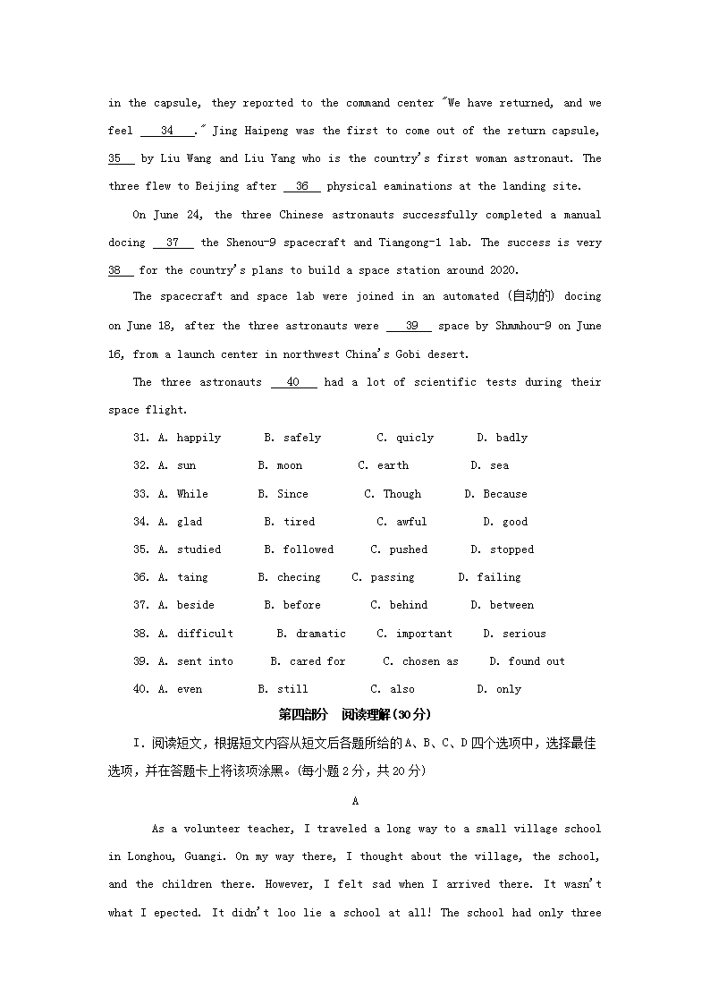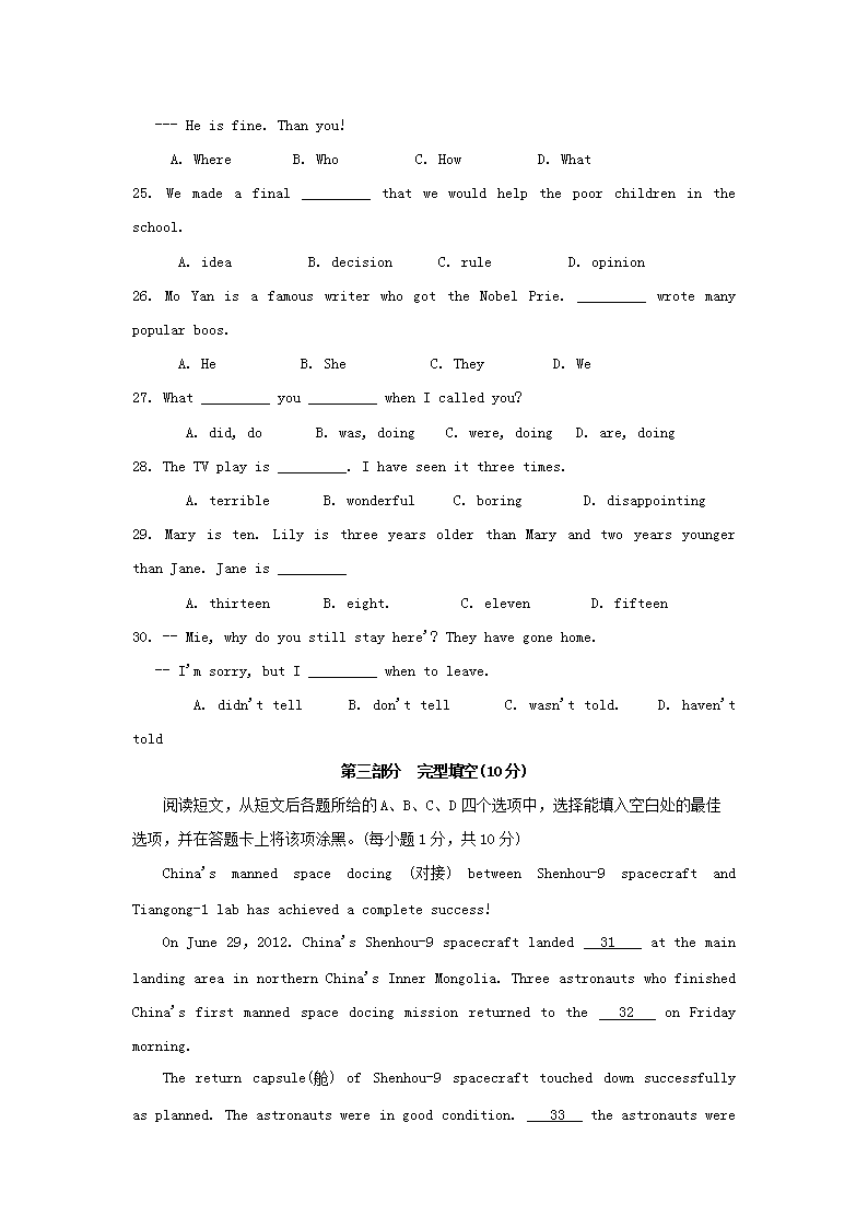 【文档预览】 无忧考网整理发布2013年贵州省毕节市中考英语试题及答案(Word版),前五页预览如下: