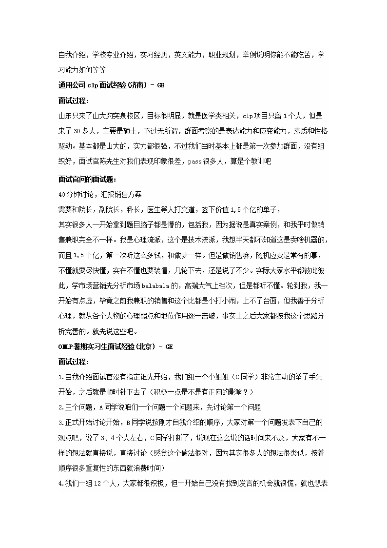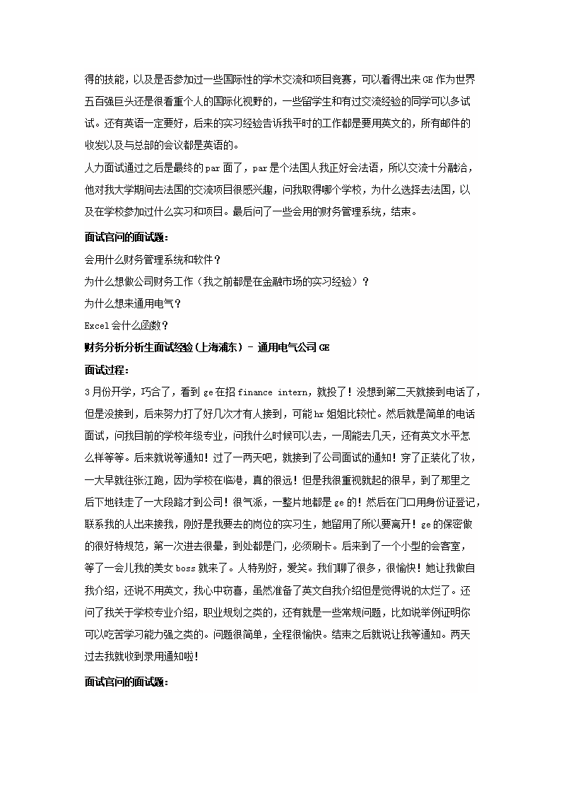 【文档名称】 通用电气公司GE面试试题及过程(Word版).doc