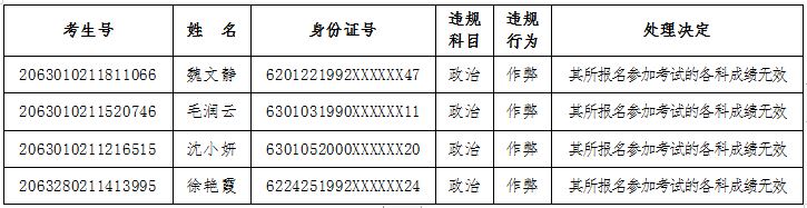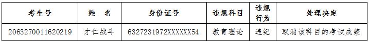 青海省2020年成人高考违规考生处理名单