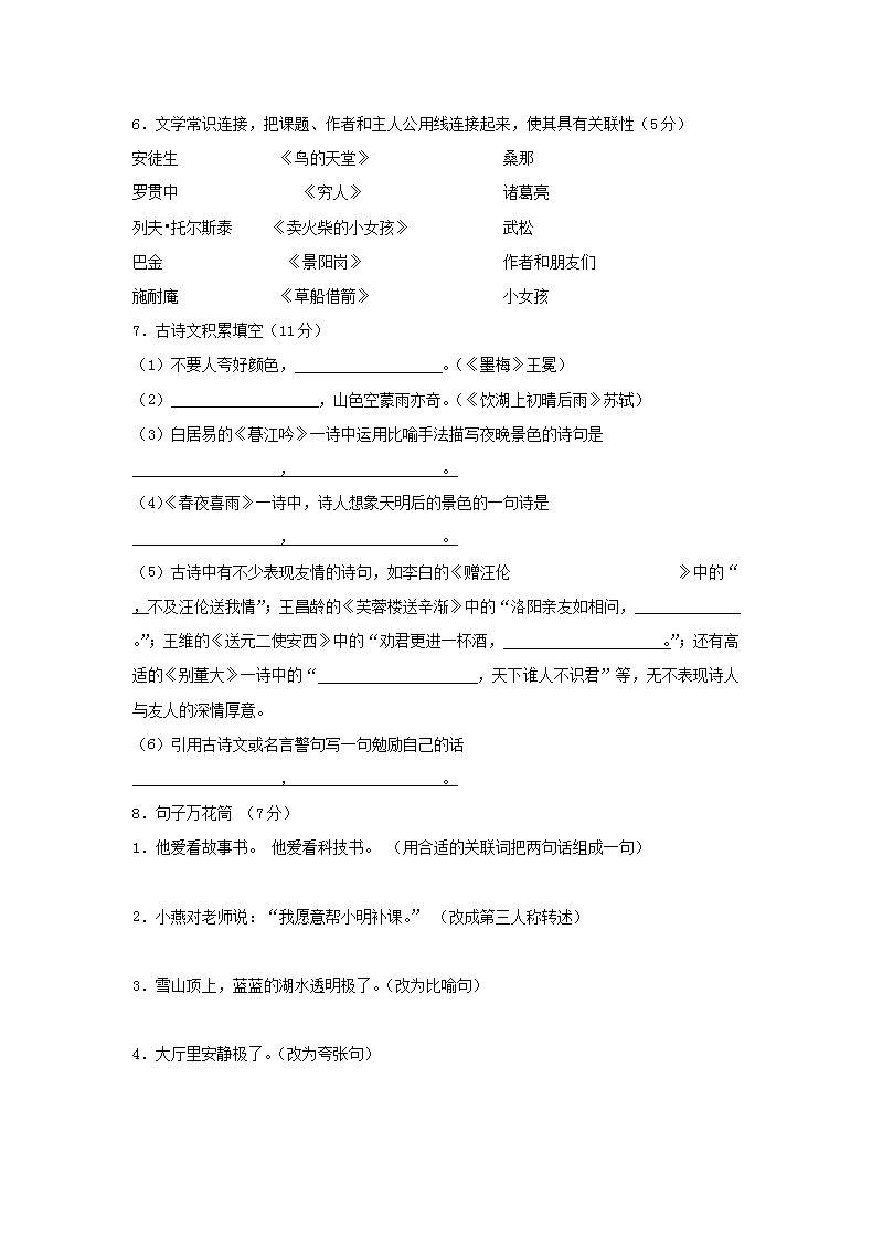 【文档预览】 无忧考网整理发布2010年黑龙江小升初语文真题及答案(Word版),前五页预览如下: