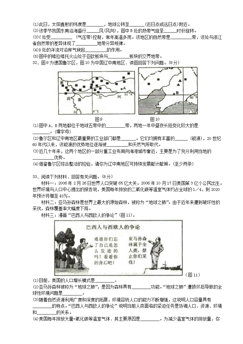 【文档名称】 2008年浙江普通高中会考地理真题及答案(Word版).doc