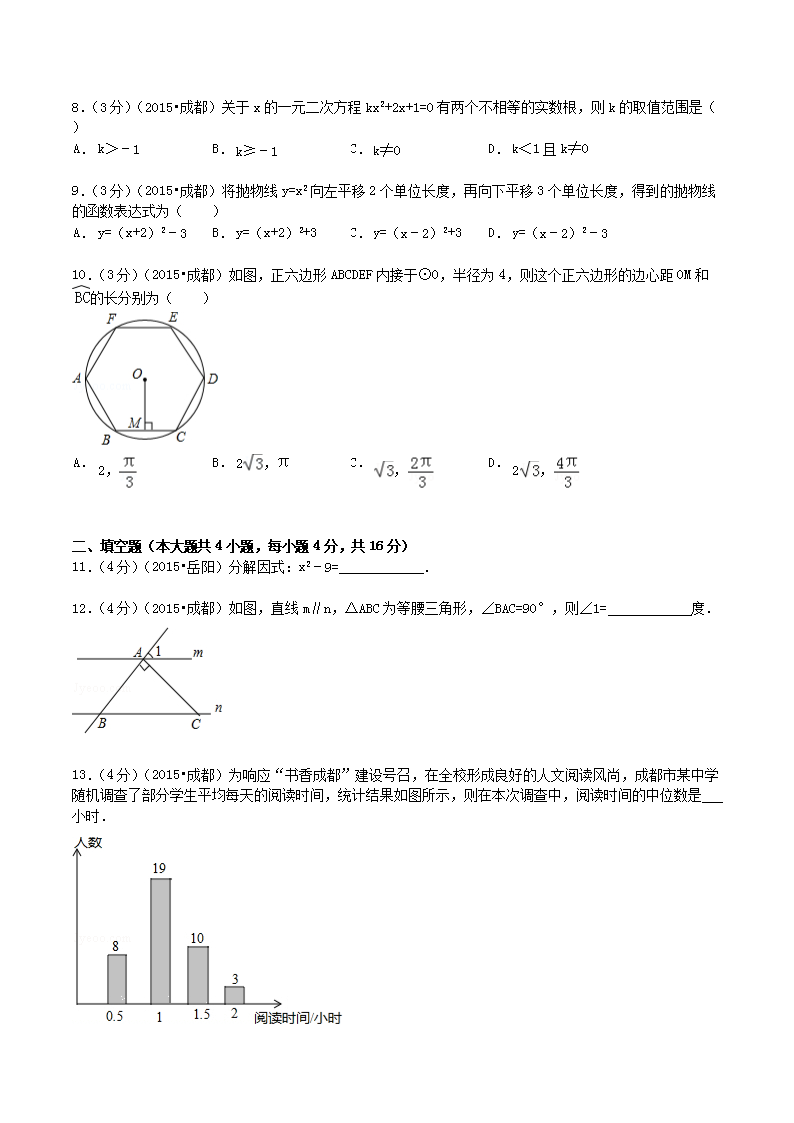 【文档名称】 2015年四川省成都市中考数学真题及答案(Word版).doc
