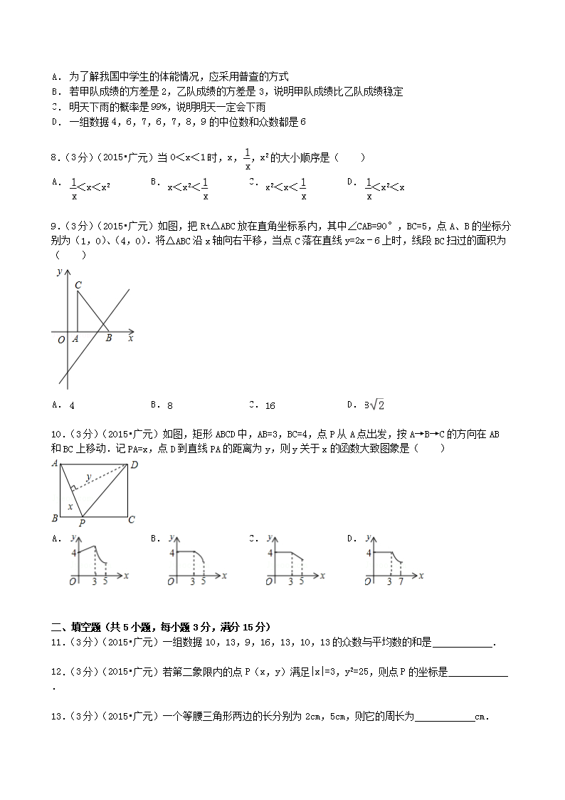 【文档名称】 2015年四川省广元市中考数学真题及答案(Word版).doc