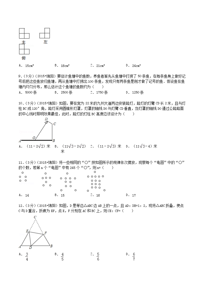 【文档名称】 2015年四川省绵阳市中考数学真题及答案(Word版).doc