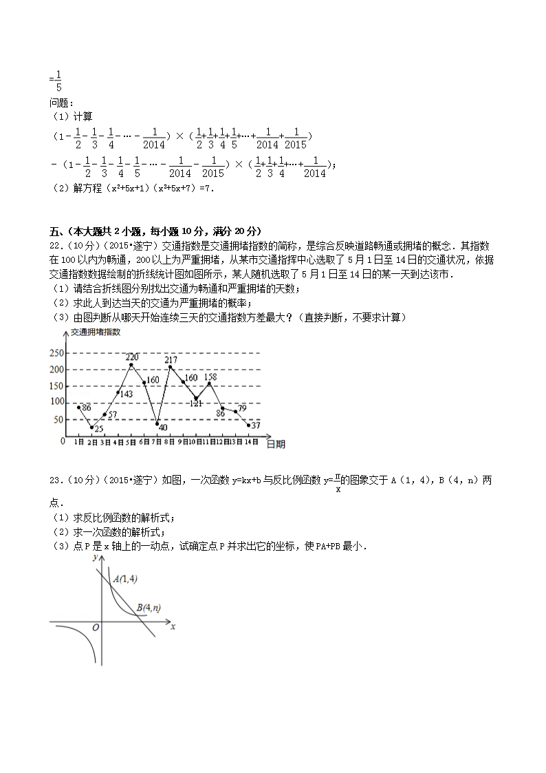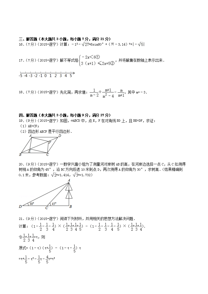 【文档名称】 2015年四川省遂宁市中考数学真题及答案(Word版).doc