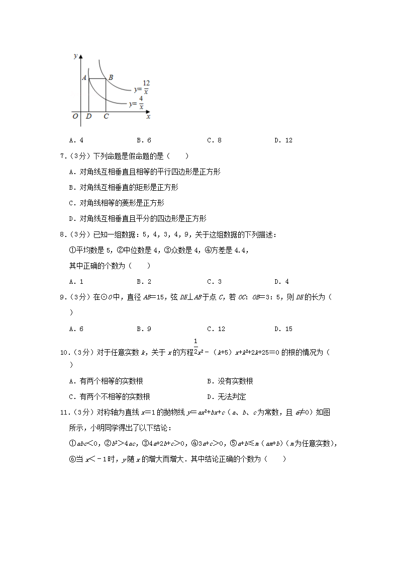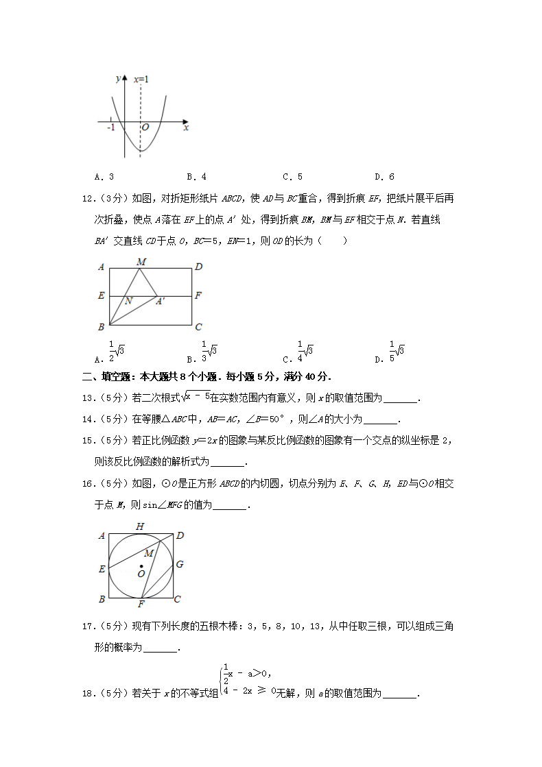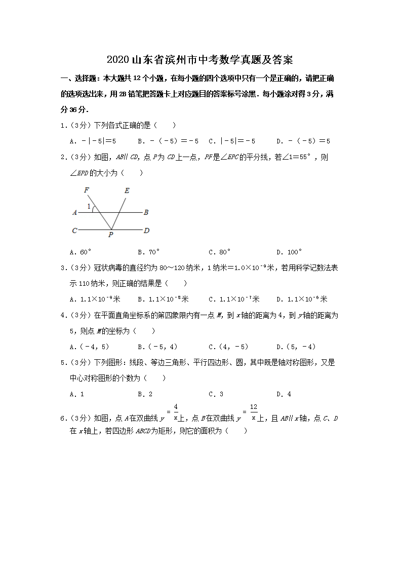 【文档名称】 2020山东省滨州市中考数学真题及答案(Word版).doc
