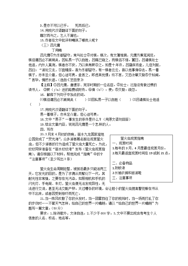 【文档预览】 无忧考网整理发布2015浙江省丽水市中考语文真题及答案(Word版),前五页预览如下: