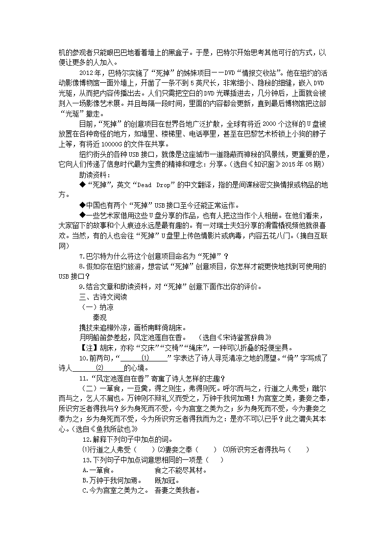 【文档名称】 2015浙江省丽水市中考语文真题及答案(Word版).doc