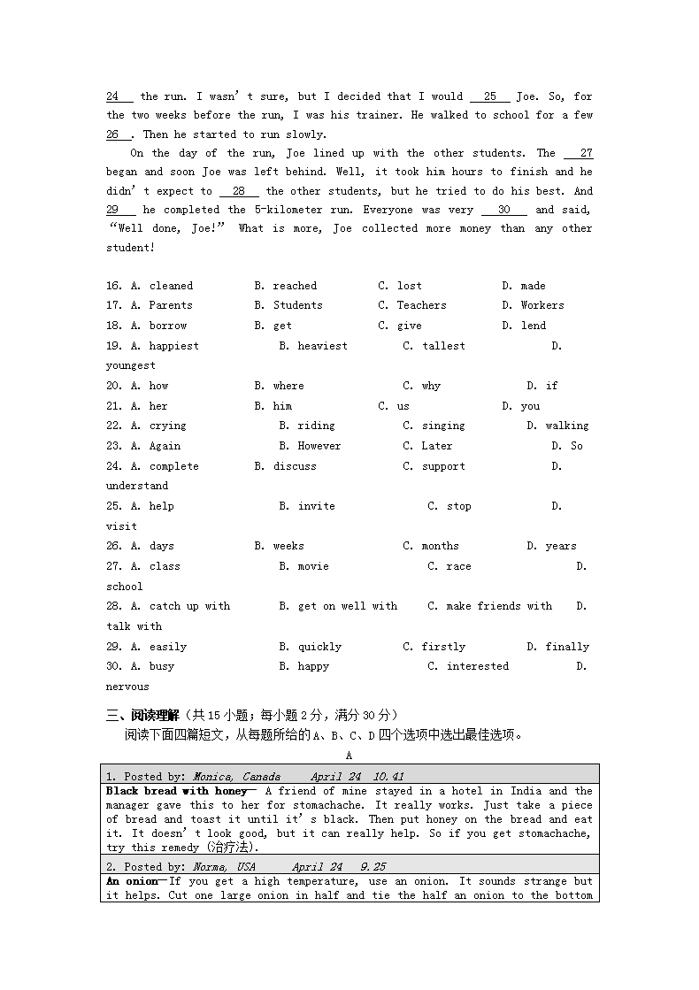 【文档名称】 2015浙江省丽水市中考英语真题及答案(Word版).doc