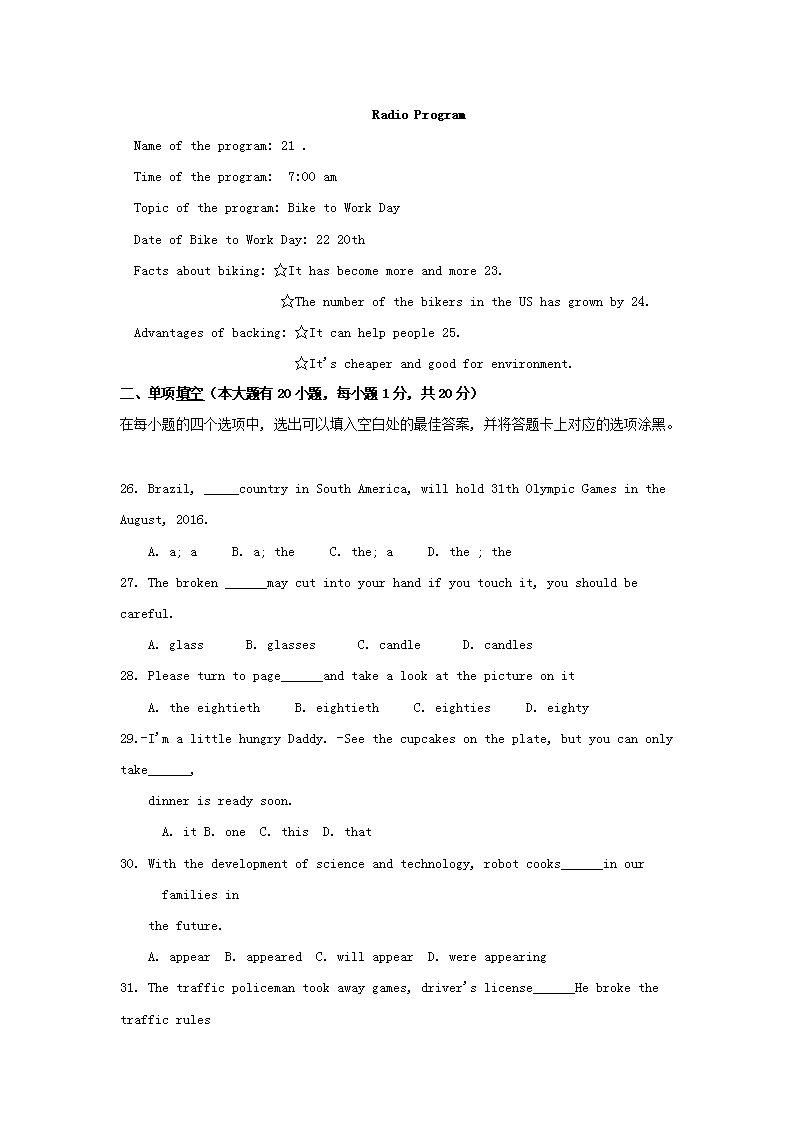 【文档名称】 2016年广东省湛江市中考英语试题及答案(Word版).doc