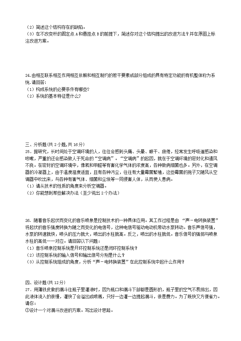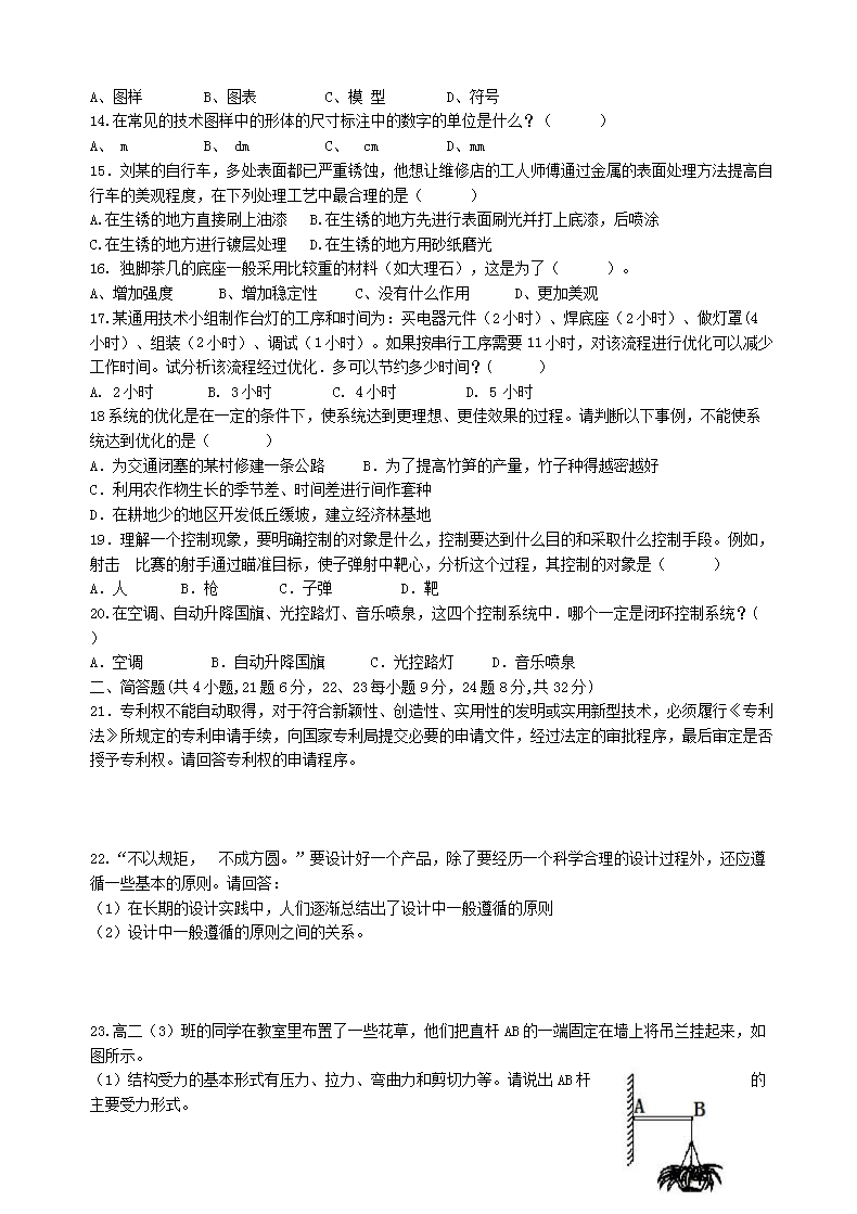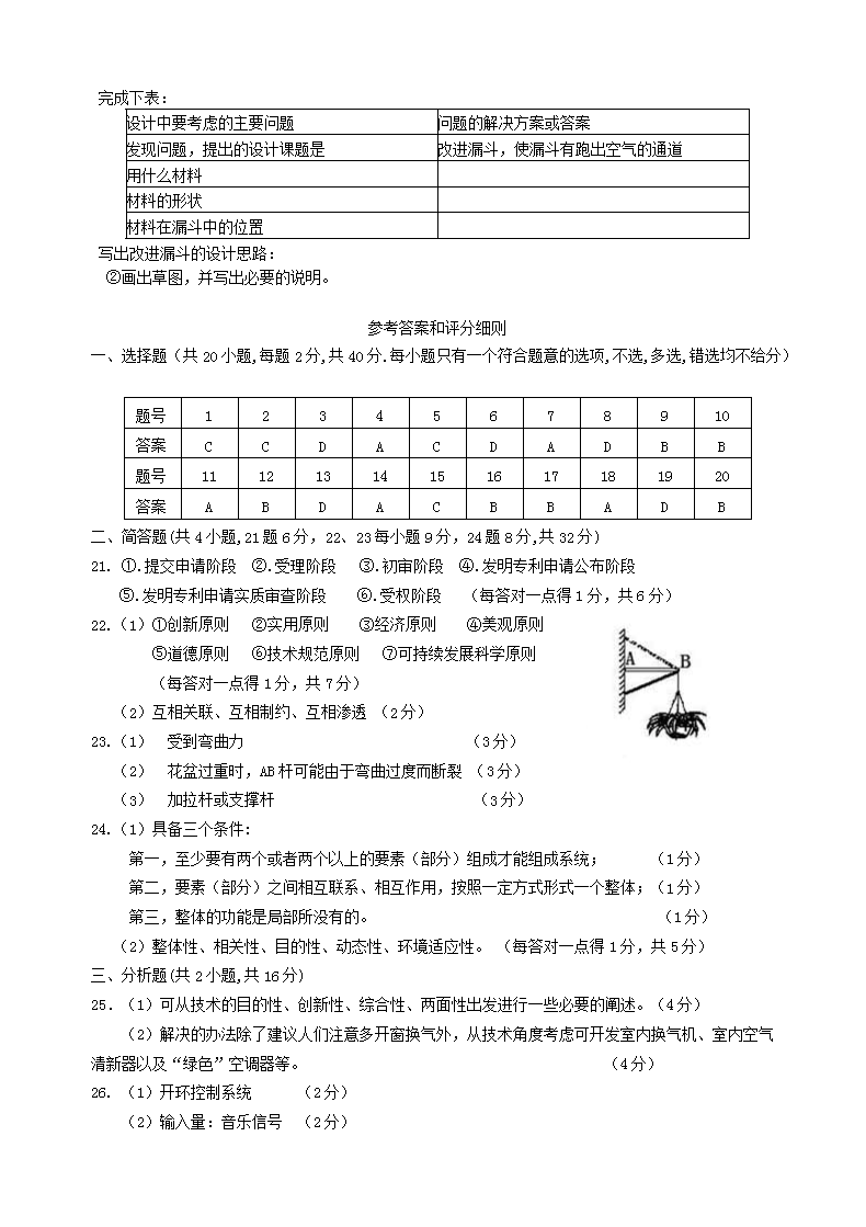 【文档名称】 2010年江西普通高中会考通用技术真题及答案(Word版).doc