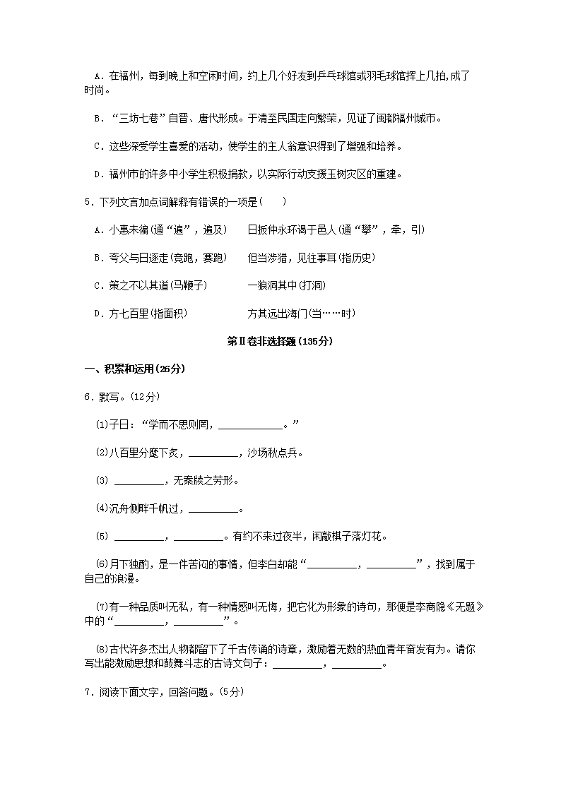 【文档名称】 2010年福建省福州市中考语文真题及答案(Word版).doc
