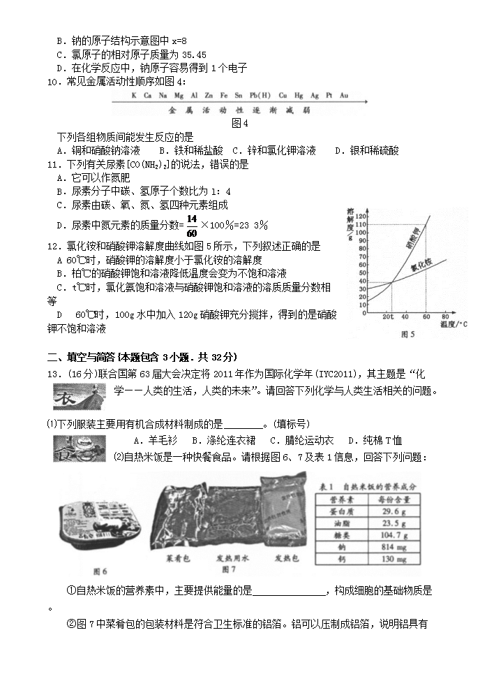 【文档名称】 2011年福建省福州市中考化学真题及答案(Word版).doc