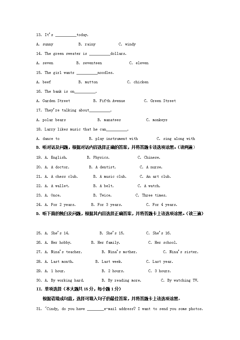 【文档名称】 2011年贵州省贵阳市中考英语试题及答案(Word版).doc