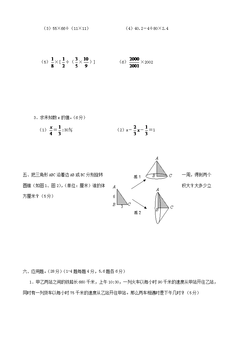 【文档名称】 2013年江苏小升初数学真题及答案(Word版).doc