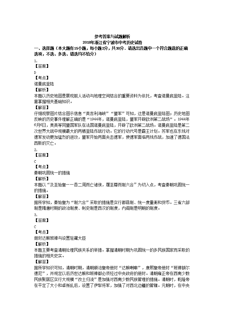 【文档预览】 无忧考网整理发布2018浙江省宁波市中考历史真题及答案(Word版),前五页预览如下: