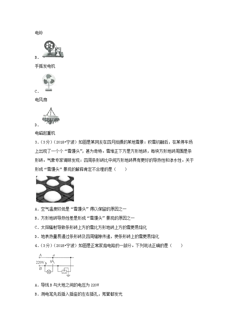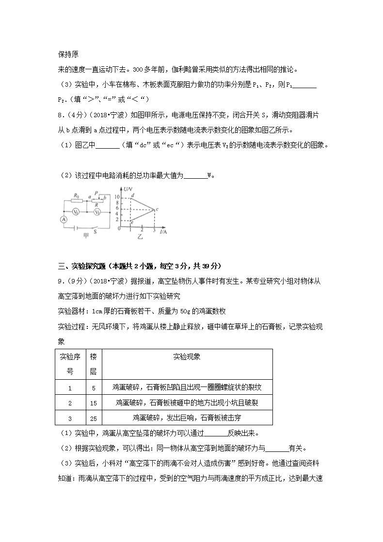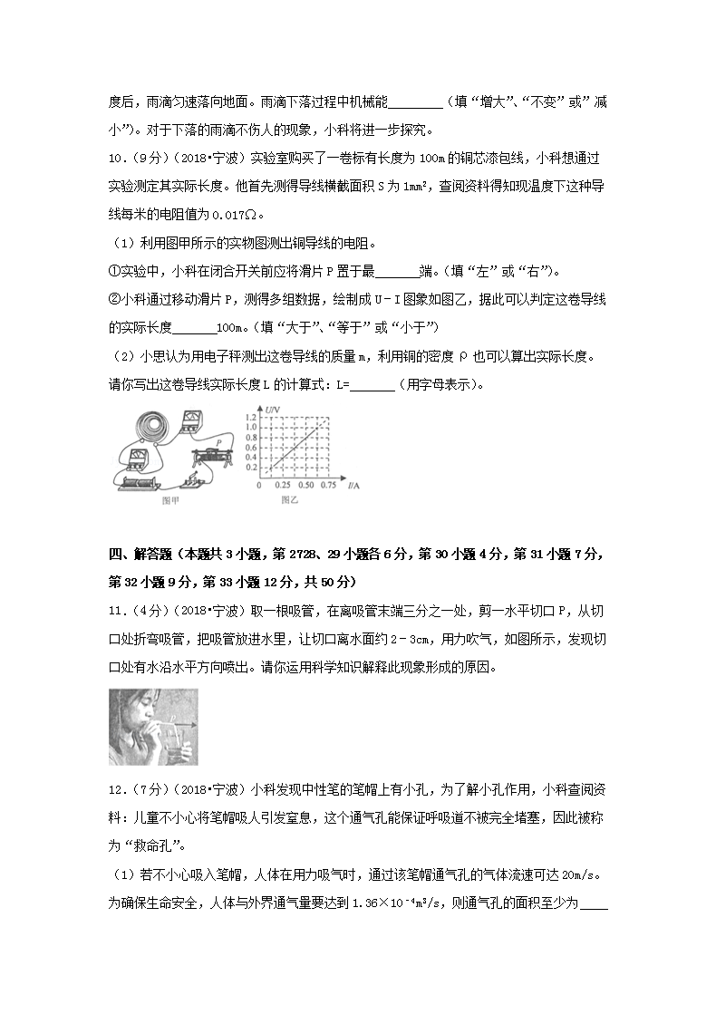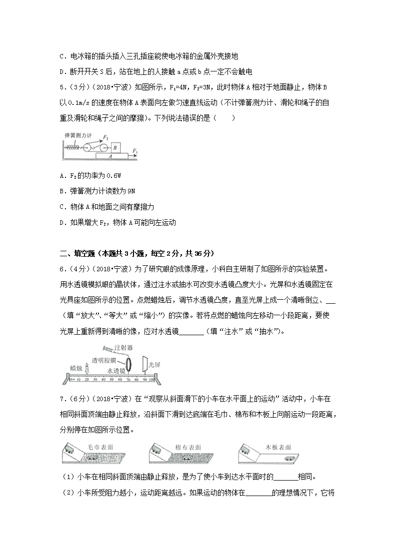【文档名称】 2018浙江省宁波市中考物理真题及答案(Word版).doc