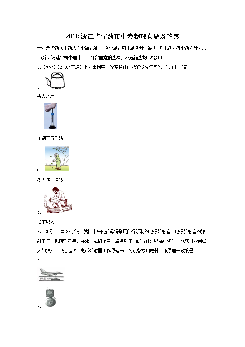 【文档预览】 无忧考网整理发布2018浙江省宁波市中考物理真题及答案(Word版),前五页预览如下: