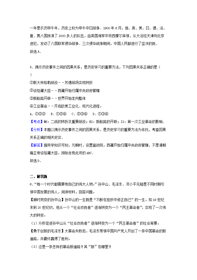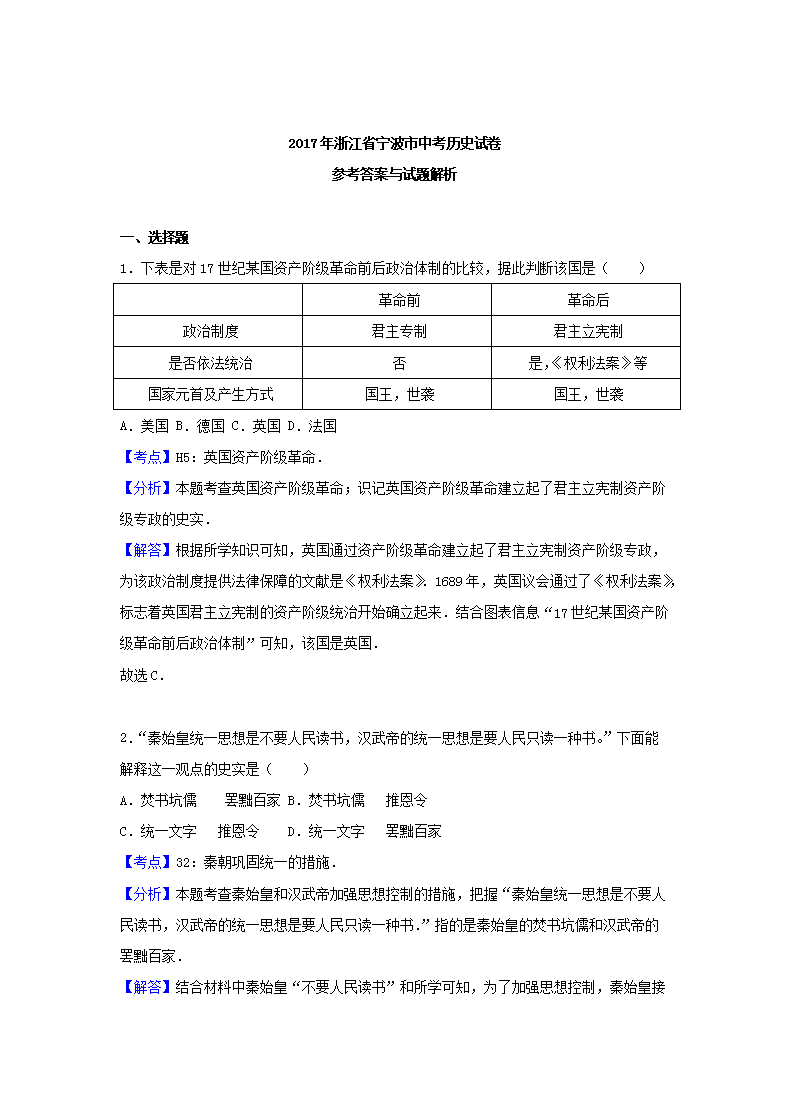 【文档名称】 2017浙江省宁波市中考历史真题及答案(Word版).doc
