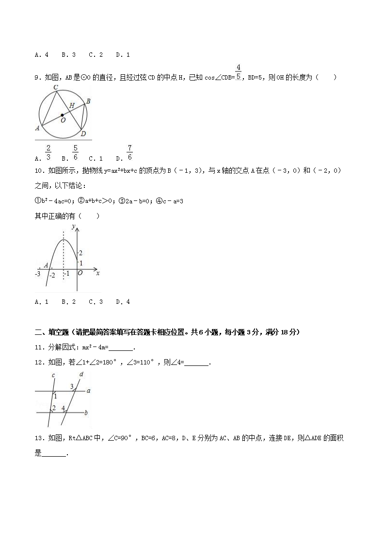 【文档名称】 2017年四川省广安市中考数学真题及答案(Word版).doc