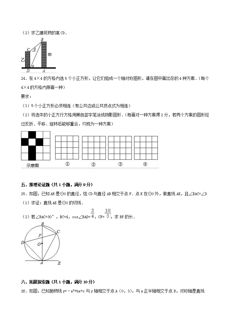 【文档预览】 无忧考网整理发布2017年四川省广安市中考数学真题及答案(Word版),前五页预览如下: