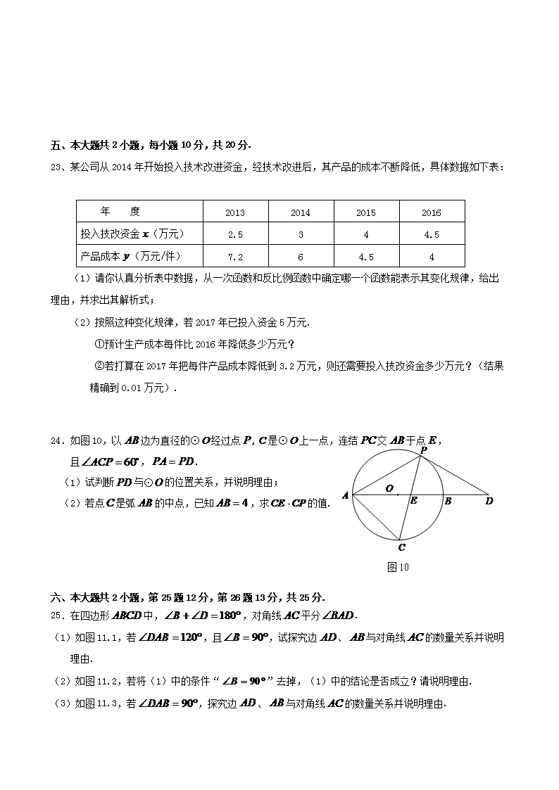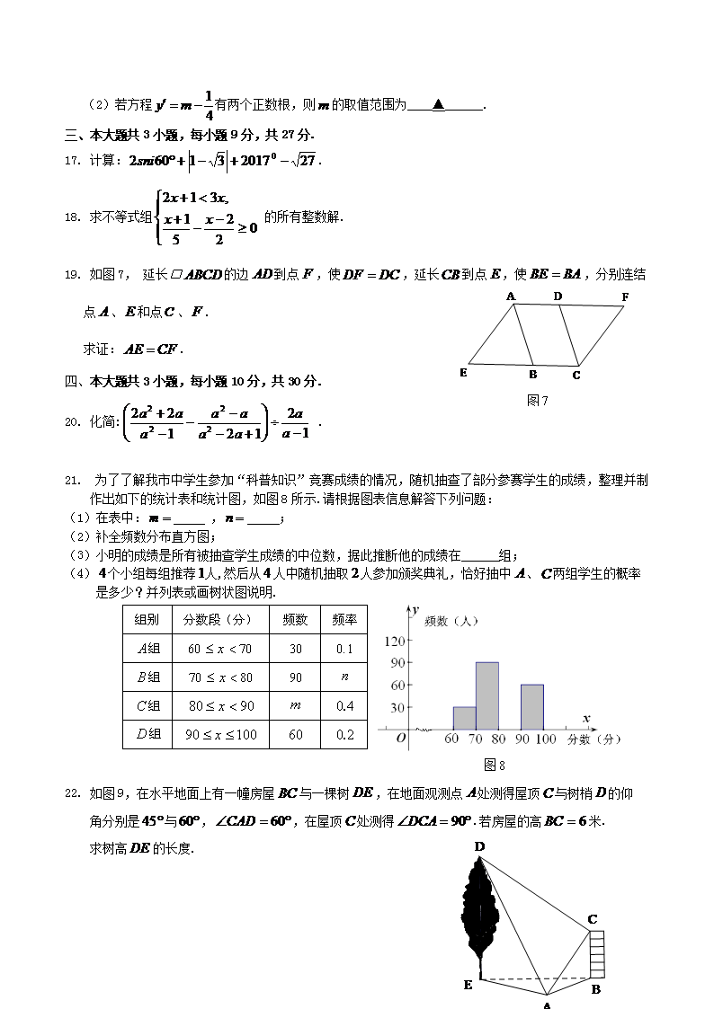 【文档名称】 2017年四川省乐山市中考数学真题及答案(Word版).doc