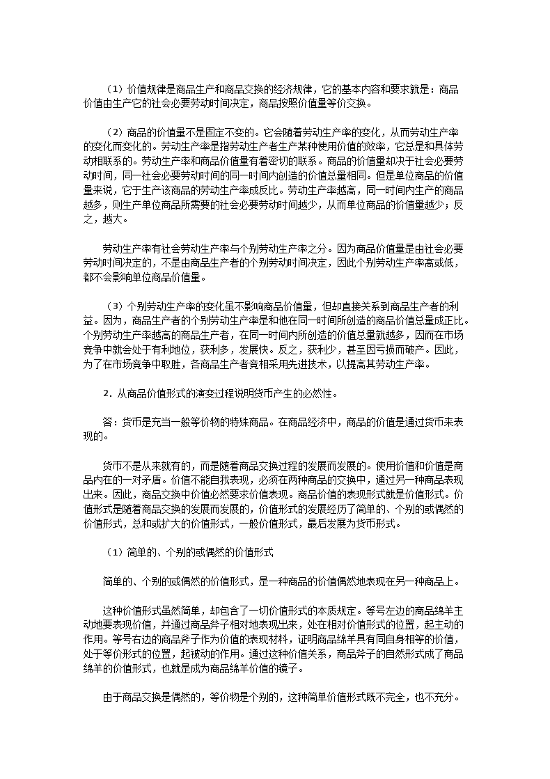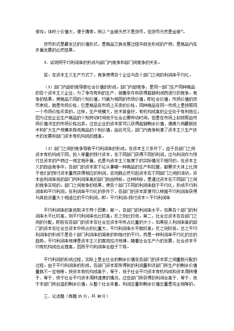 【文档名称】 2001年湖北武汉大学政治经济学考研真题及答案(Word版).doc