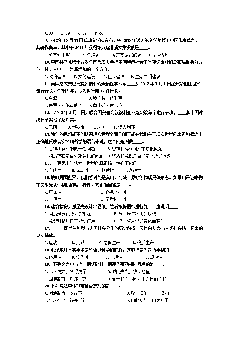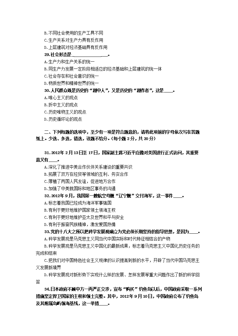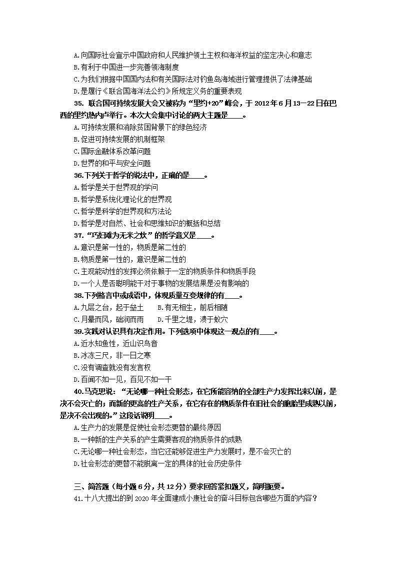 【文档名称】 2013年北京科技大学政治理论考研真题(Word版).doc