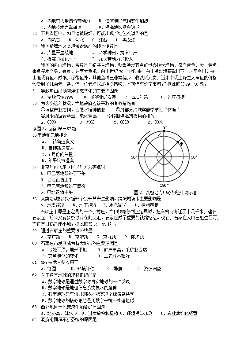 【文档名称】 2010年河北普通高中会考地理真题及答案(Word版).doc