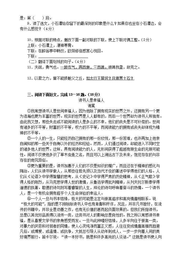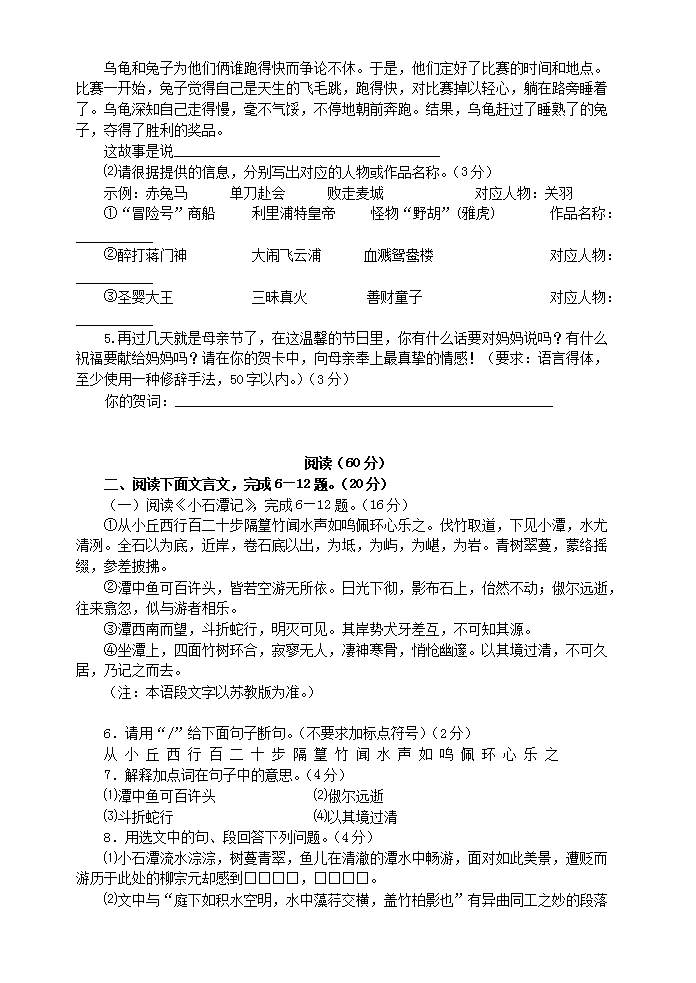 【文档名称】 2006年福建省福州市中考语文真题及答案(Word版).doc