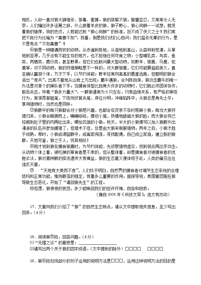 【文档预览】 无忧考网整理发布2006年福建省福州市中考语文真题及答案(Word版),前五页预览如下: