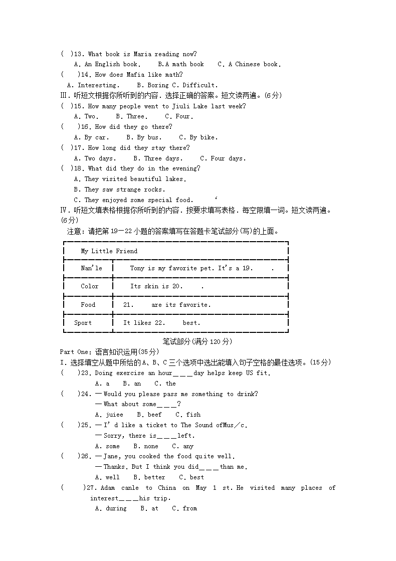【文档名称】 2013年福建省莆田市中考英语真题及答案(Word版).doc