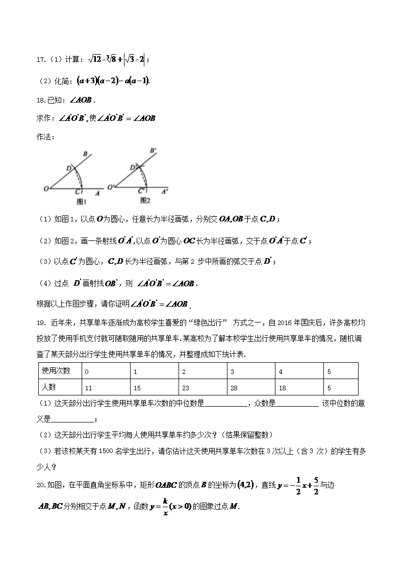 【文档名称】 2018年湖北省咸宁市中考数学真题及答案(Word版).doc