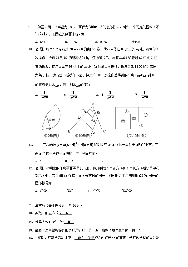 【文档名称】 2015浙江省宁波市中考数学真题及答案(Word版).doc