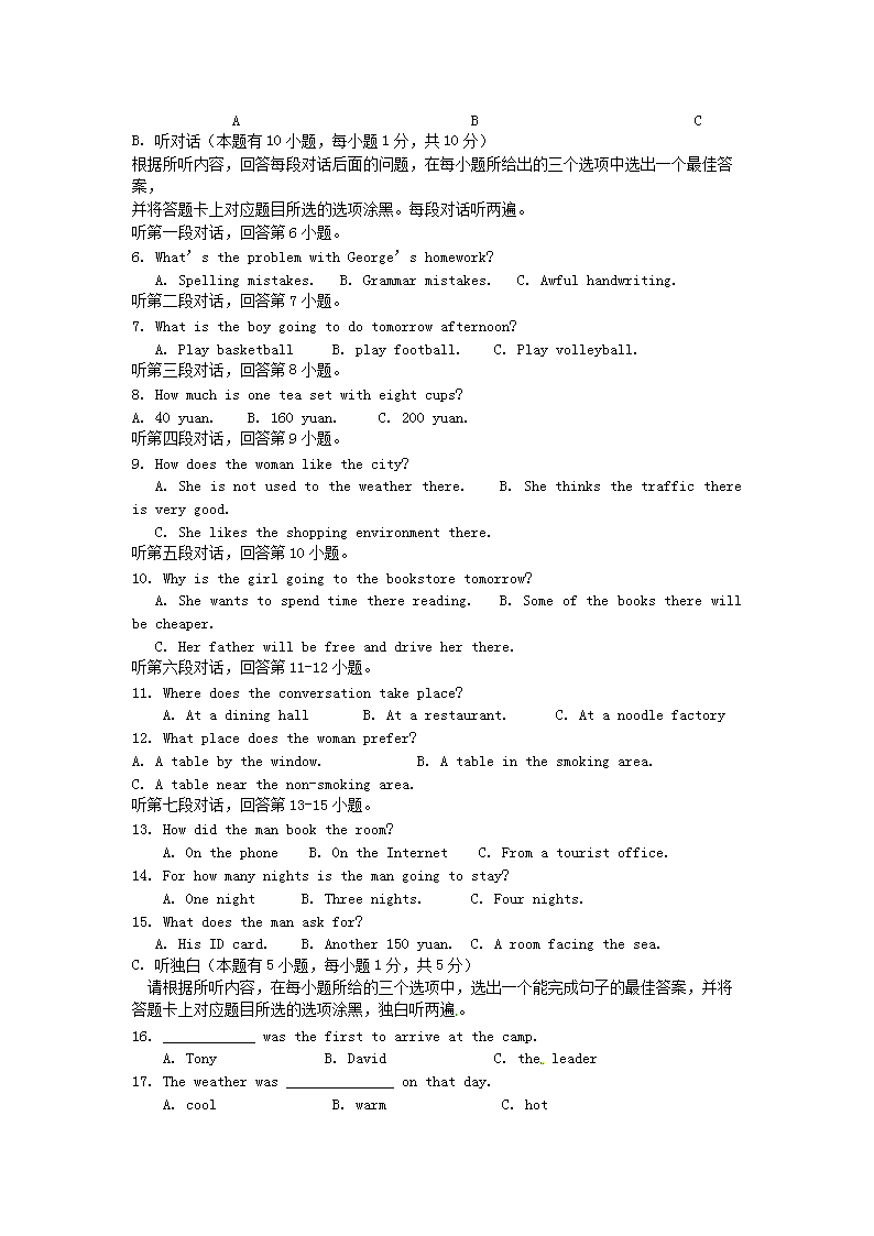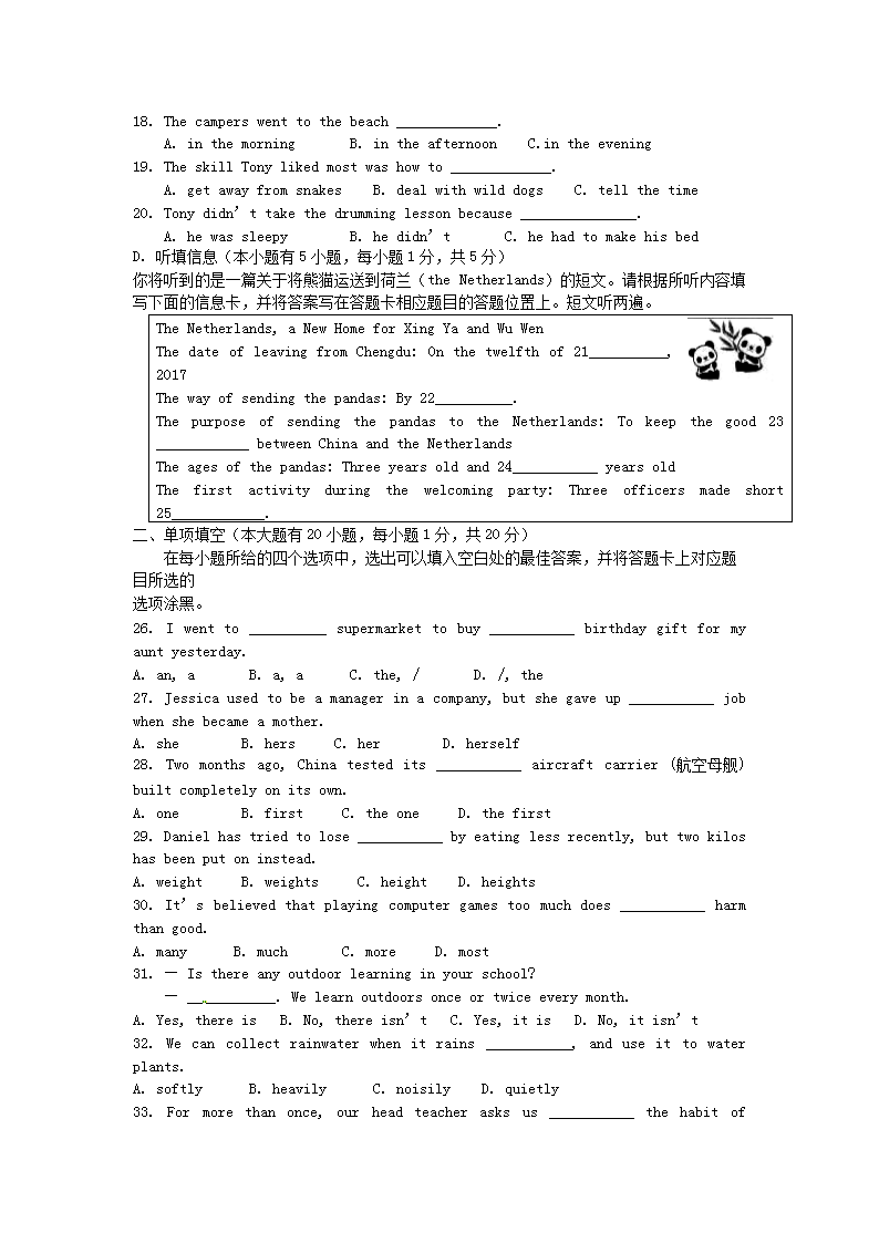 【文档名称】 2017年广东省韶关市中考英语试题及答案(Word版).doc
