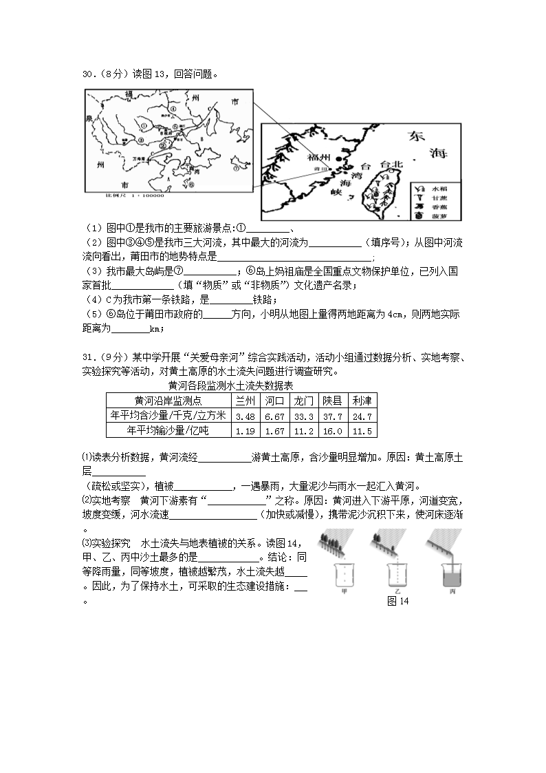 【文档名称】 2011年福建省莆田市中考地理真题及答案(Word版).doc