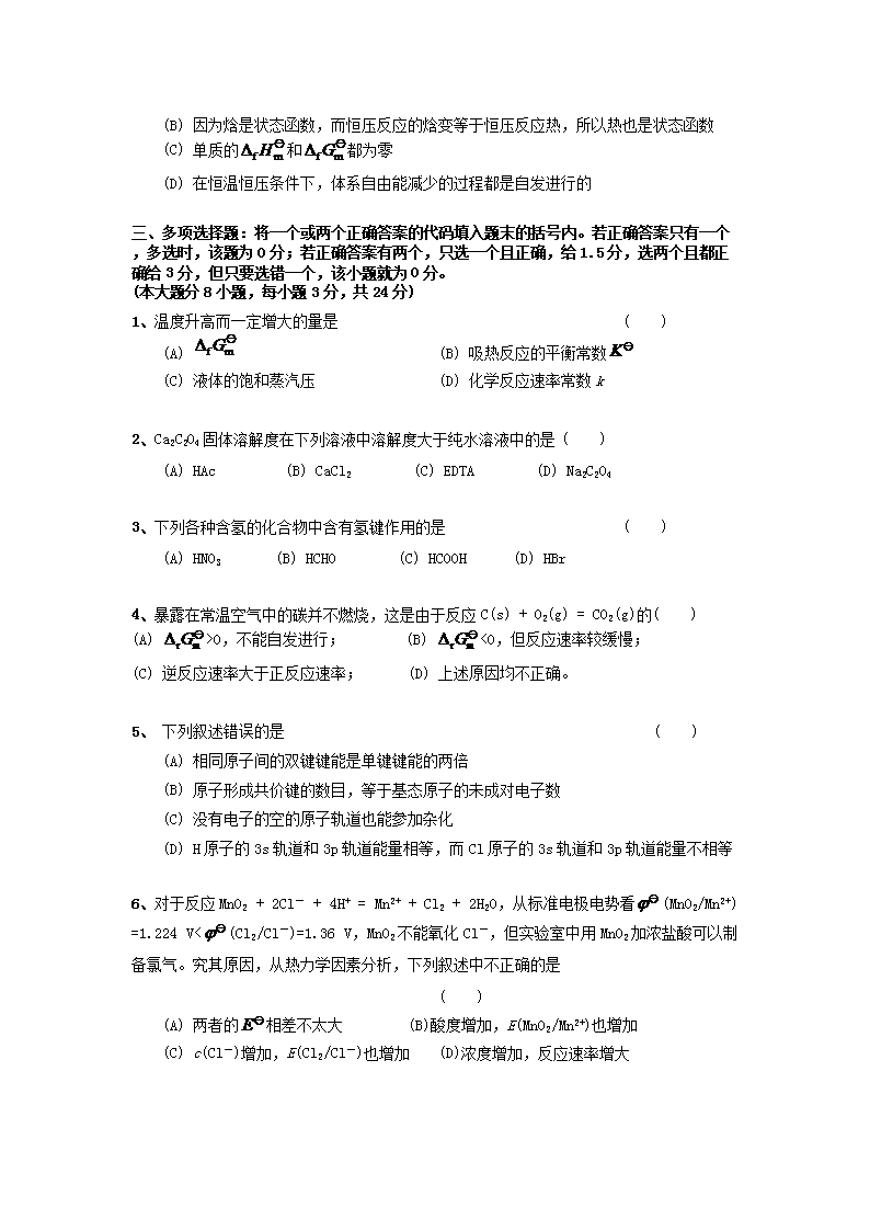 【文档名称】 2013年北京科技大学普通化学考研真题(Word版).doc