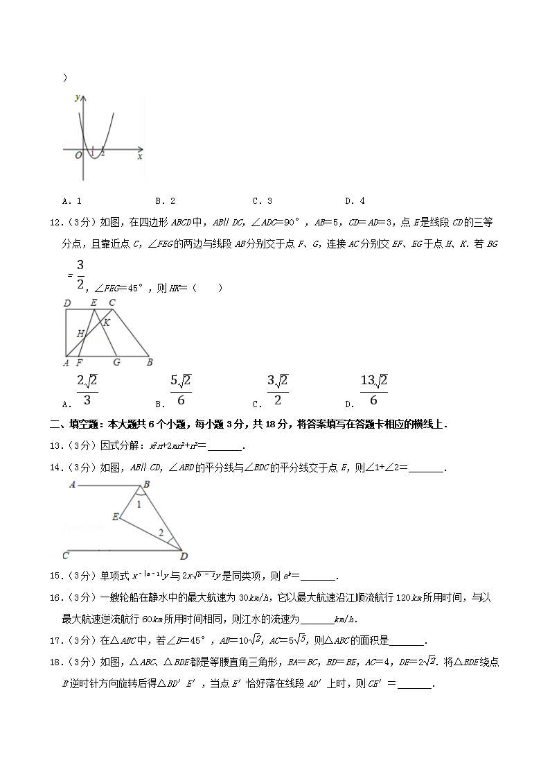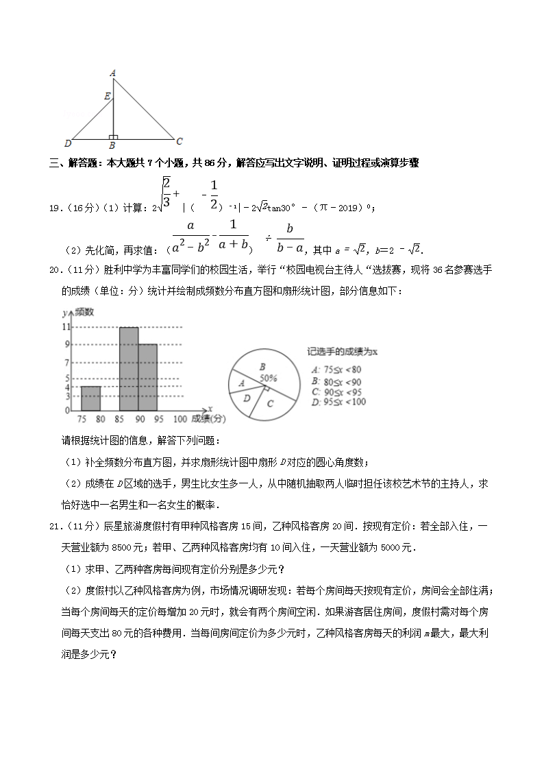 【文档名称】 2019年四川省绵阳市中考数学真题及答案(Word版).doc